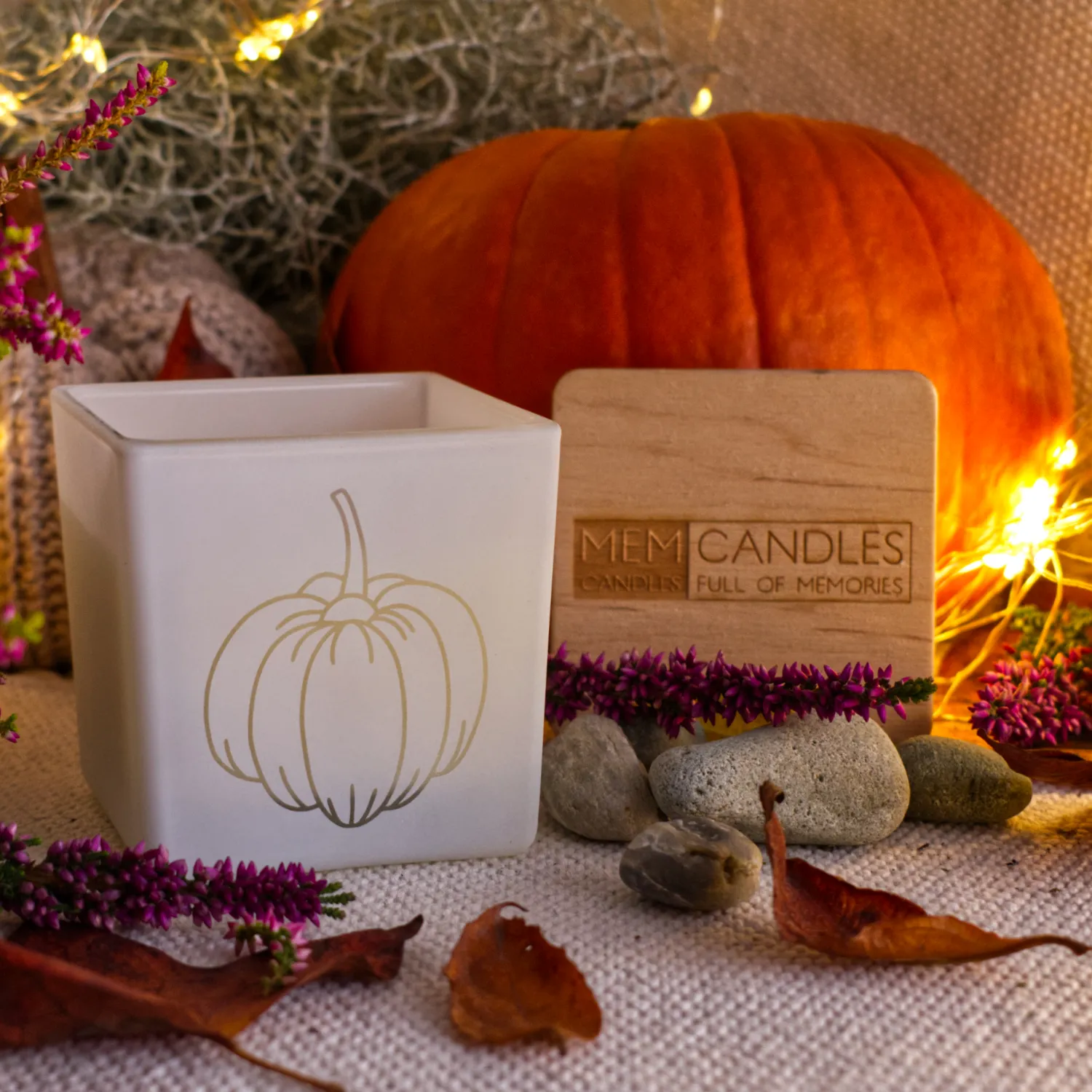 Jesienna świeca sojowa wykonana z naturalnego wosku sojowego. Idealna na prezent lub drobny upominek. W połączeniu z najwyższej jakości olejkami zapachowymi pozwoli Ci się zrelaksować i odprężyć. Pięknie ozdobi wasze jesienne stroiki. Jesienny wzór dyni rozświetlony płomieniem świecy wygląda obłędnie.