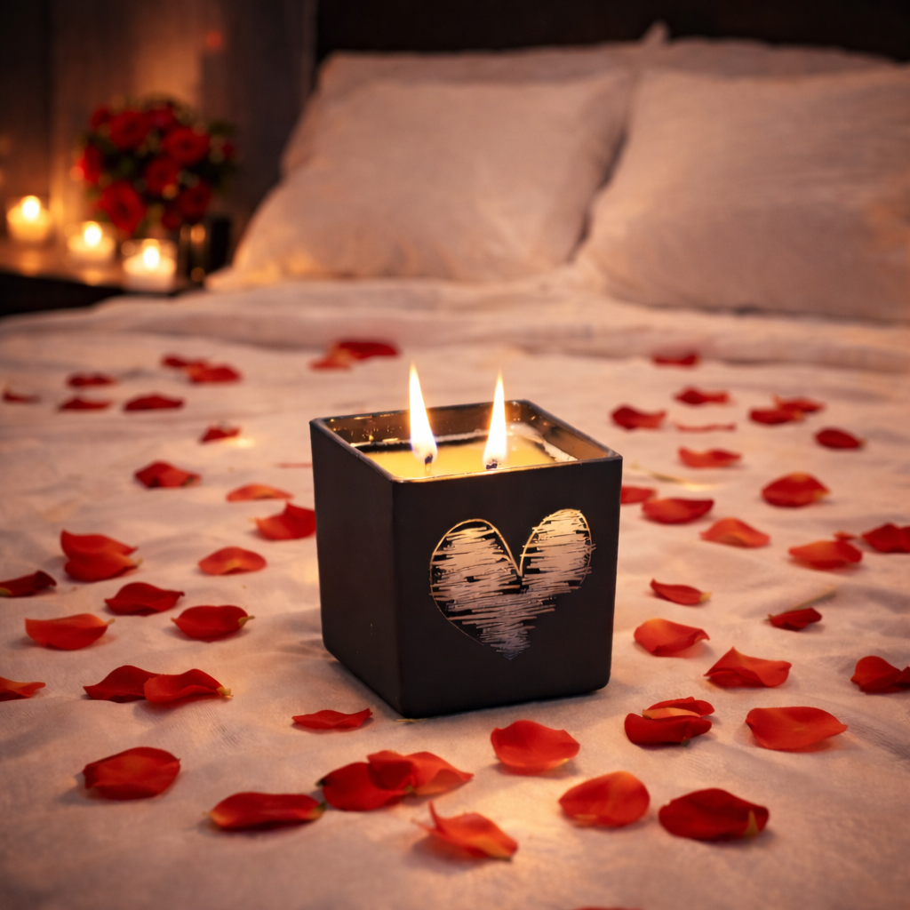 Świeca sojowa walentynkowa wykonana z naturalnego wosku sojowego. Idealna na prezent lub drobny upominek. W połączeniu z najwyższej jakości olejkami zapachowymi pozwoli Ci się zrelaksować i odprężyć. Pięknie ozdobi wasze wnętrza. Wzór „Serce Rys” rozświetlony płomieniem świecy wygląda obłędnie. Idealnie nada się do przyozdobienia waszych walentynkowych stołów.